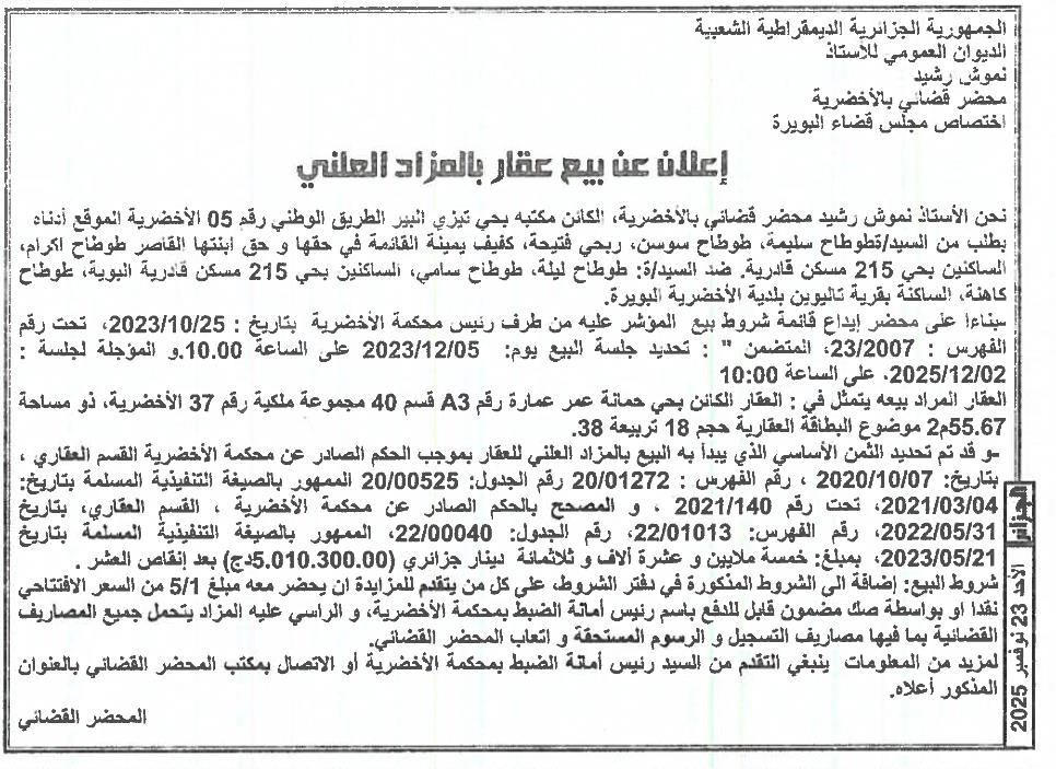 Il sera procédé à la vente au plus offrant et dernier enchérisseur le :