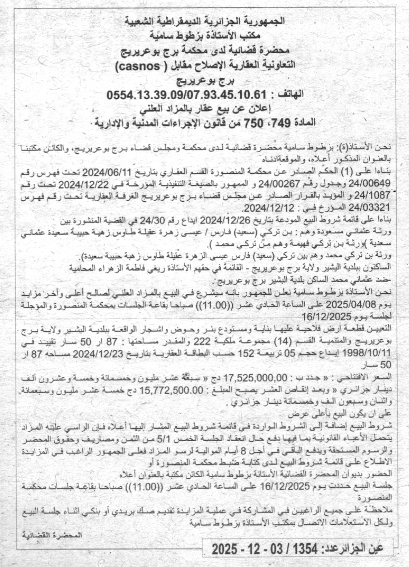 Il sera procédé à la vente au plus offrant et dernier enchérisseur le :