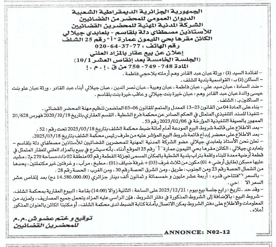 Il sera procédé à la vente au plus offrant et dernier enchérisseur le :