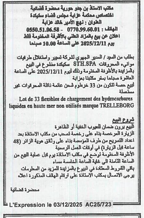 Il sera procédé à la vente au plus offrant et dernier enchérisseur le :