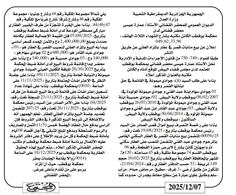 Il sera procédé à la vente au plus offrant et dernier enchérisseur le :