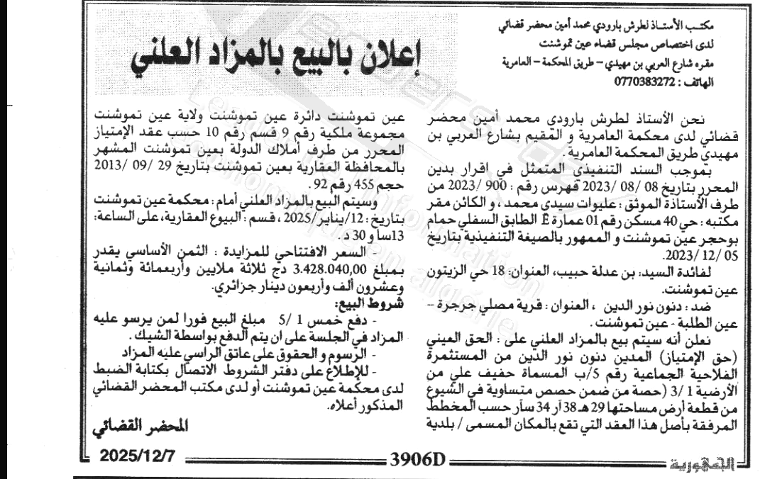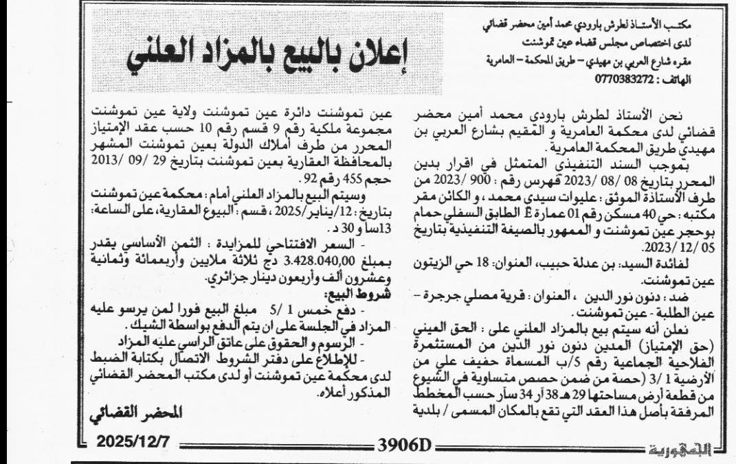 Il sera procédé à la vente au plus offrant et dernier enchérisseur le :