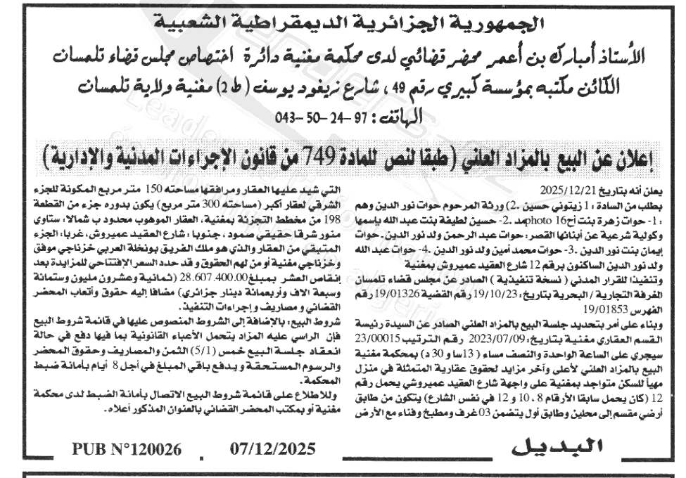 | Date Publication : 07/12/2025 | |