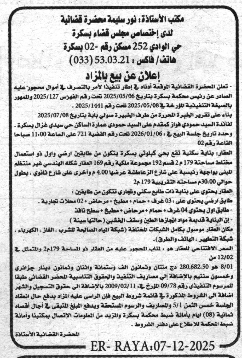 Il sera procédé à la vente au plus offrant et dernier enchérisseur le :