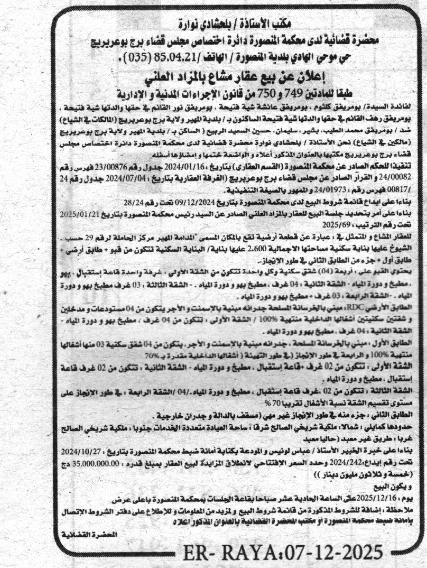Il sera procédé à la vente au plus offrant et dernier enchérisseur le :