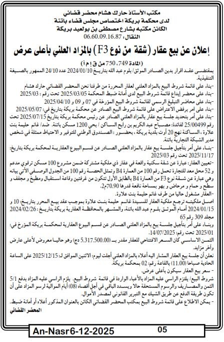 Il sera procédé à la vente au plus offrant et dernier enchérisseur le :