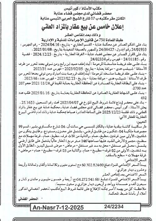 Il sera procédé à la vente au plus offrant et dernier enchérisseur le :