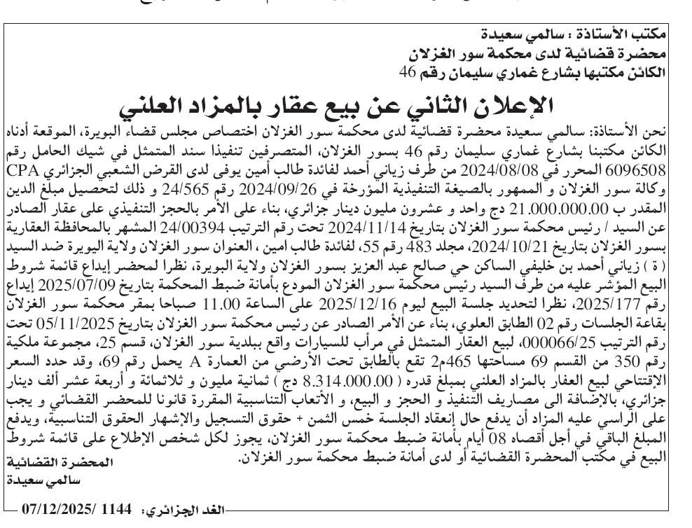 | Paru dans le journal : الغد الجزائري | |