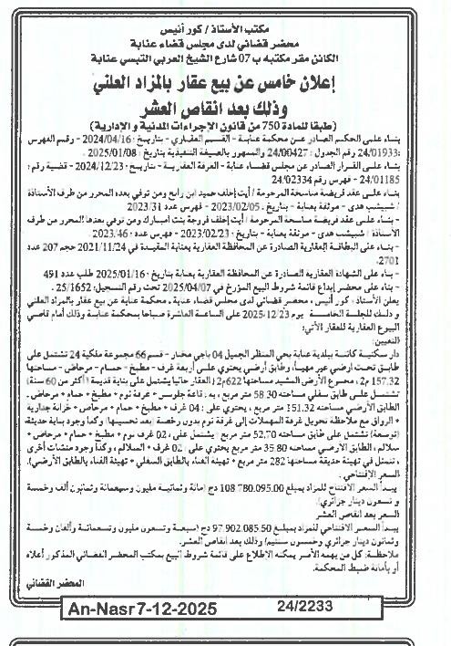 Il sera procédé à la vente au plus offrant et dernier enchérisseur le : 23/12/2025';