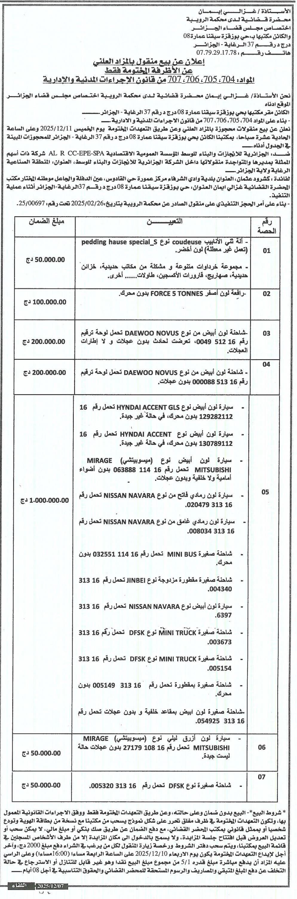 Il sera procédé à la vente au plus offrant et dernier enchérisseur le :