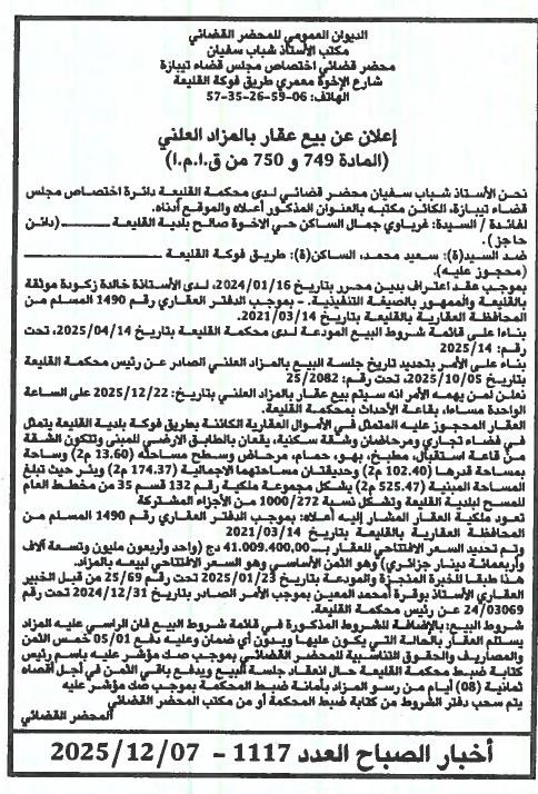 Il sera procédé à la vente au plus offrant et dernier enchérisseur le :