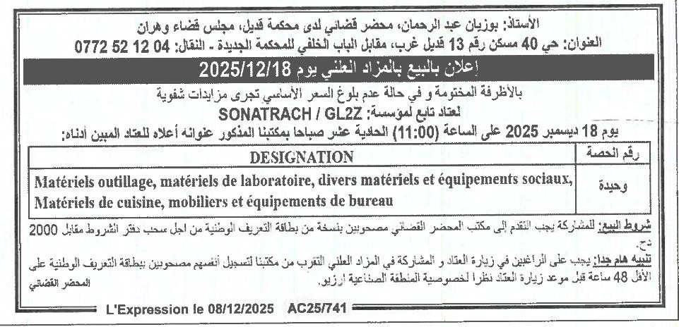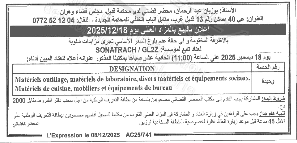 Il sera procédé à la vente au plus offrant et dernier enchérisseur le :
