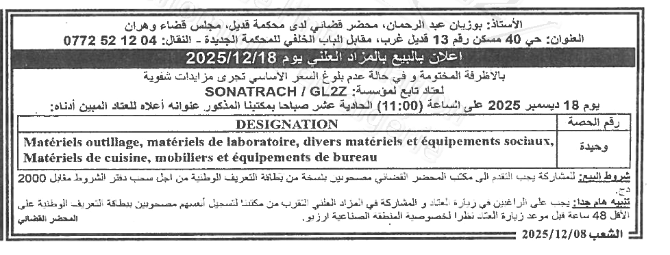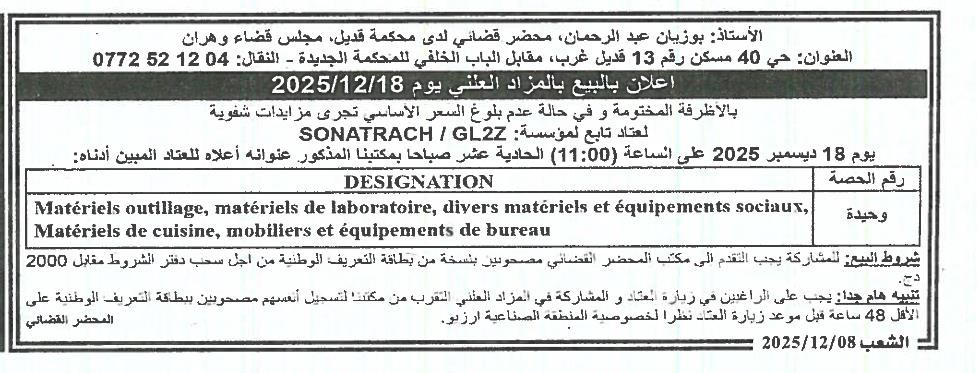Il sera procédé à la vente au plus offrant et dernier enchérisseur le :