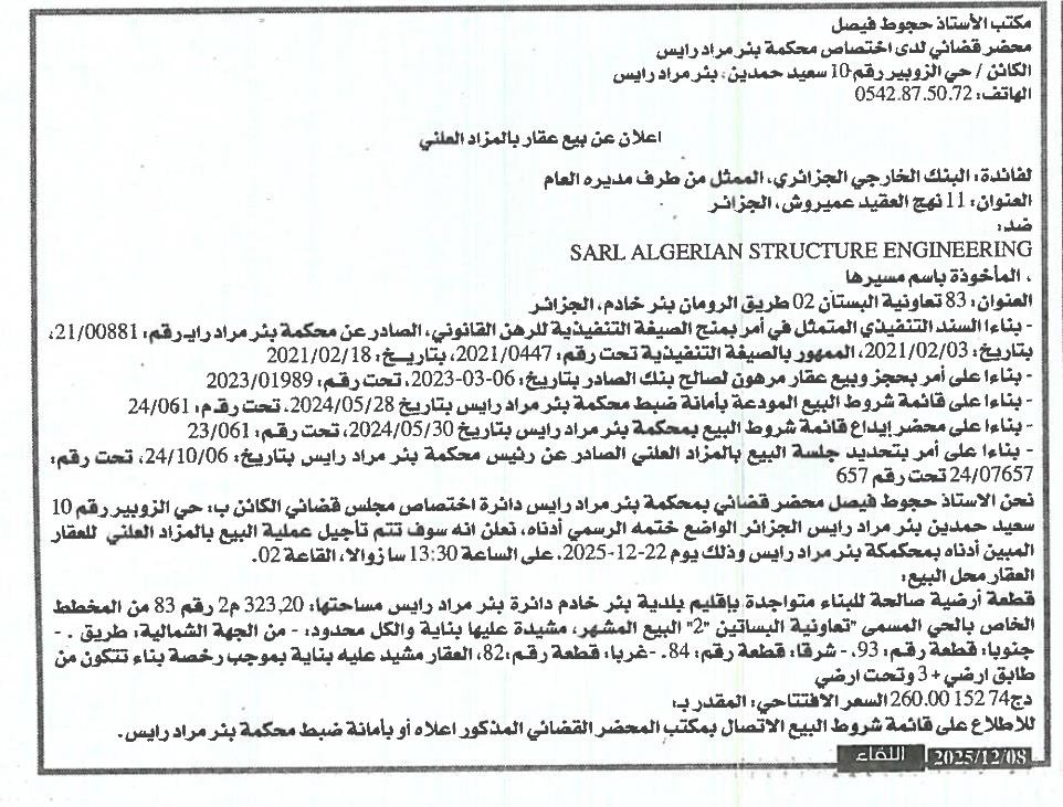 Il sera procédé à la vente au plus offrant et dernier enchérisseur le :