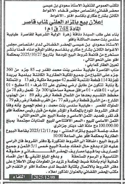Il sera procédé à la vente au plus offrant et dernier enchérisseur le :