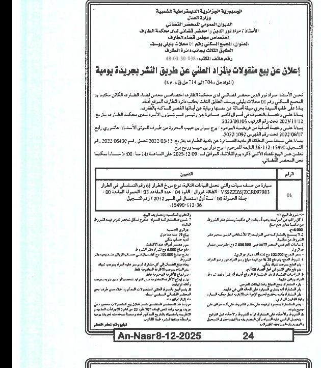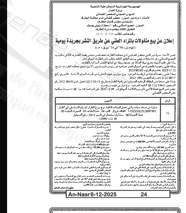 Il sera procédé à la vente au plus offrant et dernier enchérisseur le :