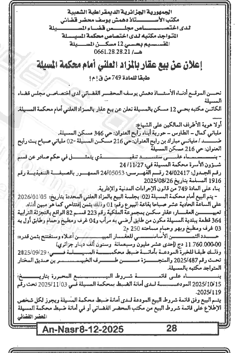 | Date Publication : 08/12/2025 | |