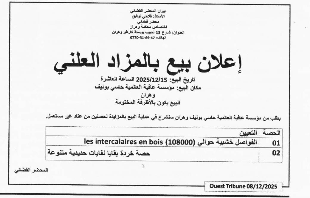 Il sera procédé à la vente au plus offrant et dernier enchérisseur le :