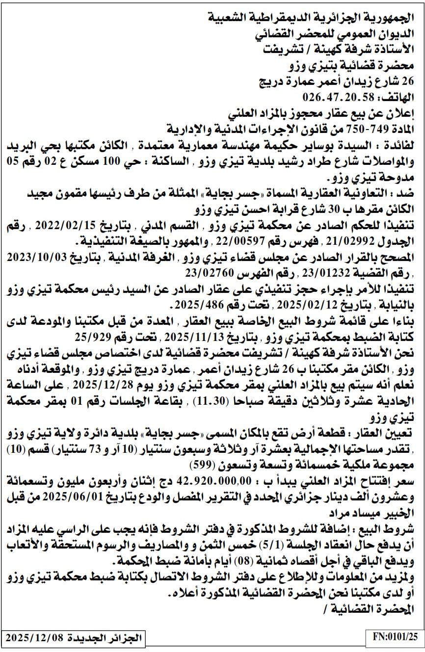 | Paru dans le journal : الجزائر الجديدة | |