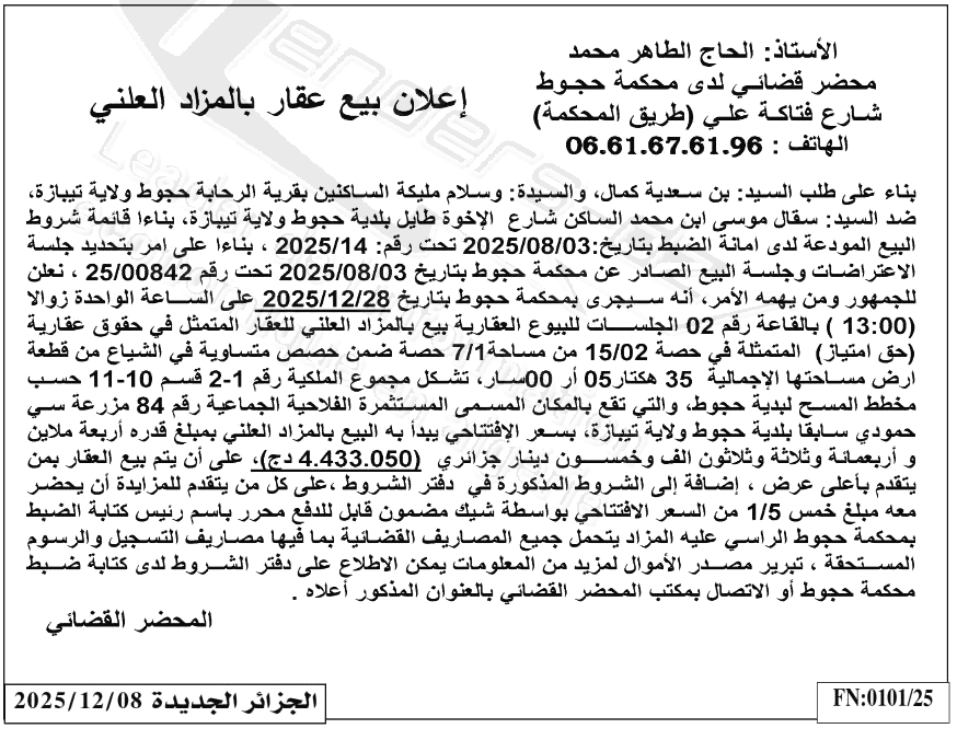 | Paru dans le journal : الجزائر الجديدة | |
