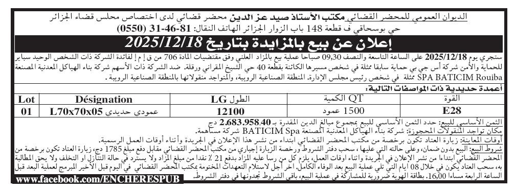 Il sera procédé à la vente au plus offrant et dernier enchérisseur le :