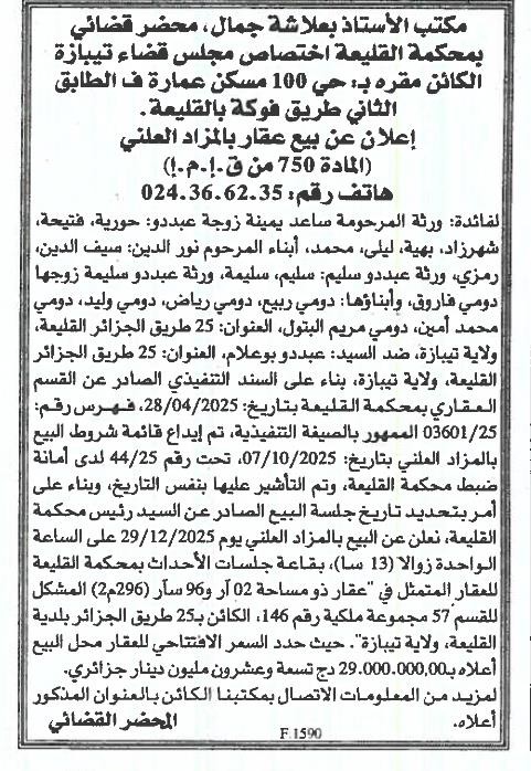 Il sera procédé à la vente au plus offrant et dernier enchérisseur le :