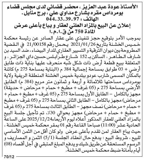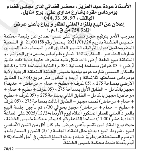 Il sera procédé à la vente au plus offrant et dernier enchérisseur le :