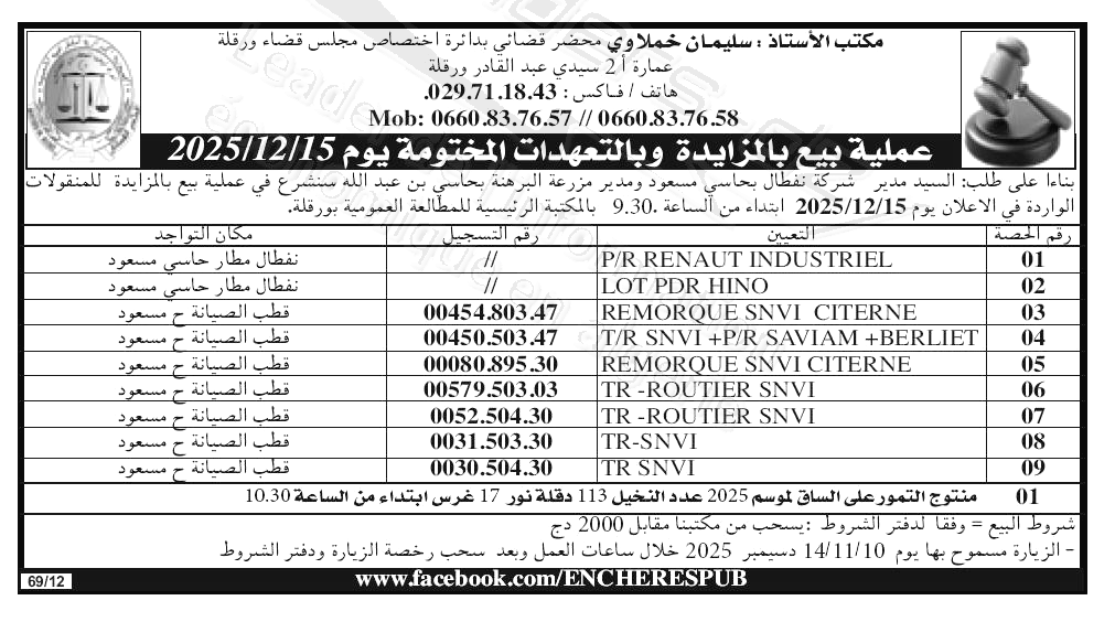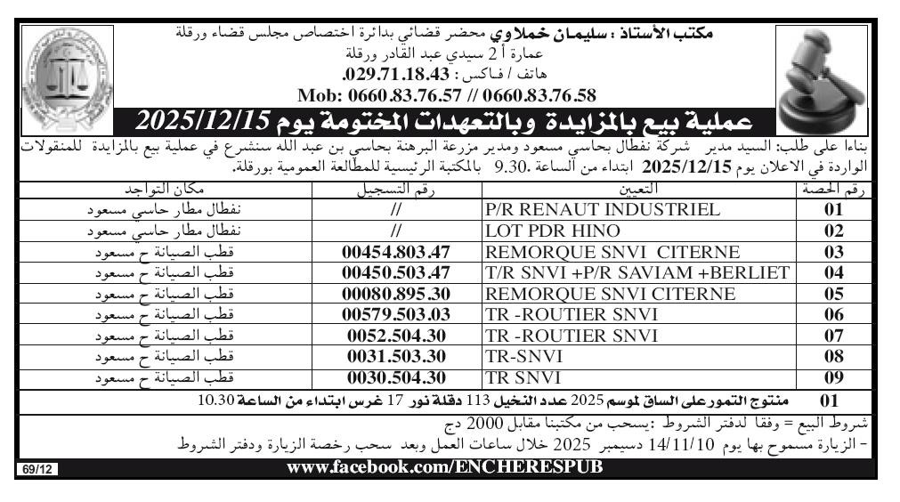 | Objet: Vente de divers équipements et véhicules | |