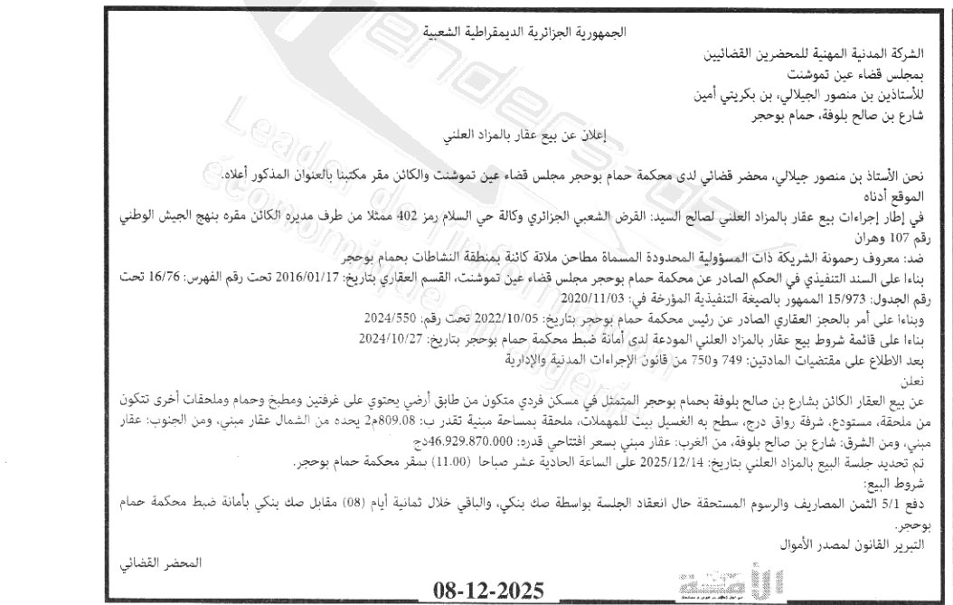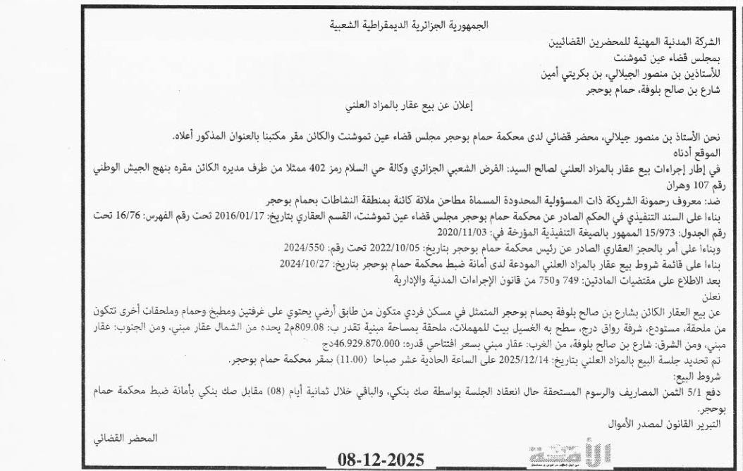 Il sera procédé à la vente au plus offrant et dernier enchérisseur le :