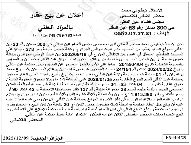 | Paru dans le journal : الجزائر الجديدة | |