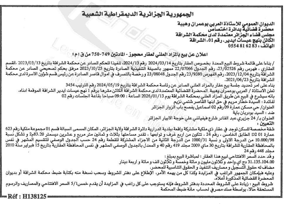 Il sera procédé à la vente au plus offrant et dernier enchérisseur le : 16/12/2025';