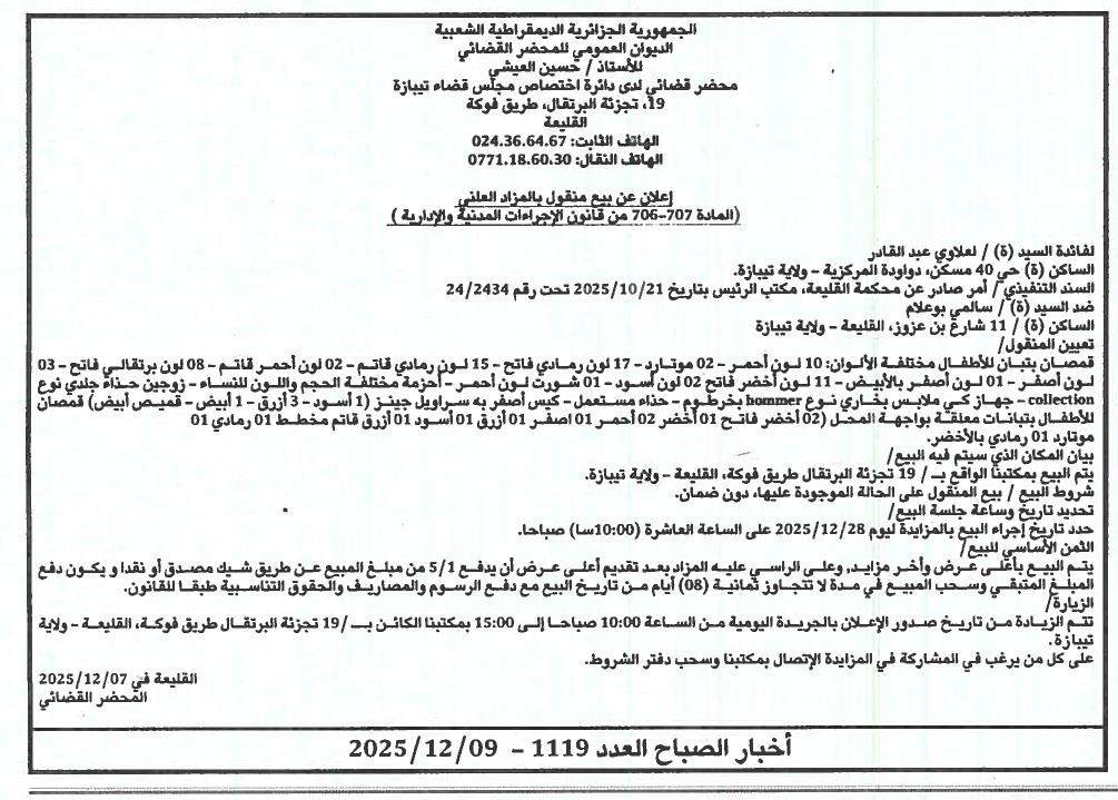 Il sera procédé à la vente au plus offrant et dernier enchérisseur le :