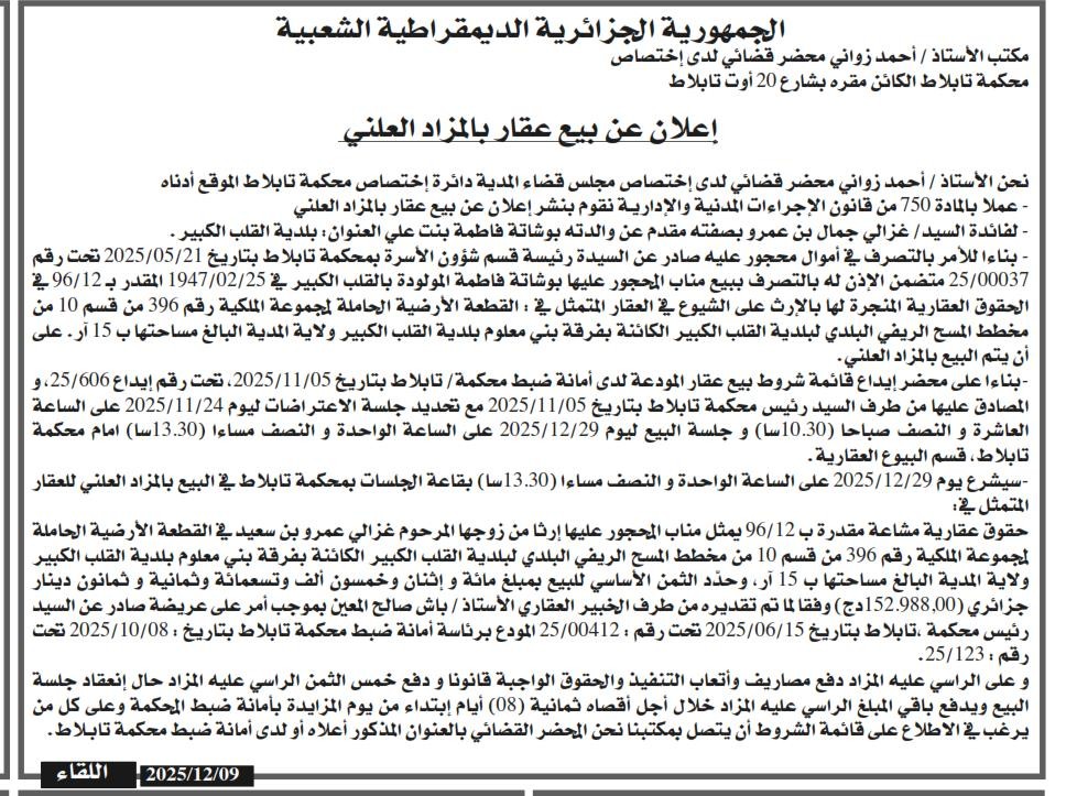 Il sera procédé à la vente au plus offrant et dernier enchérisseur le :