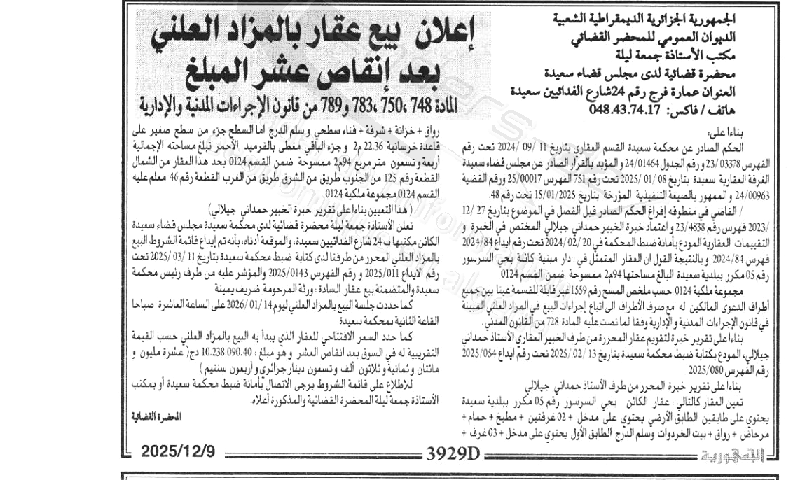 Il sera procédé à la vente au plus offrant et dernier enchérisseur le :