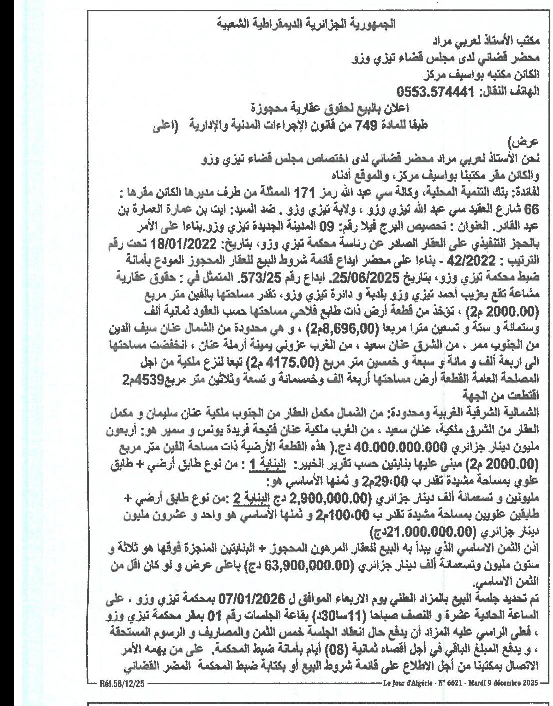 | Paru dans le journal : Le Jour d'Algerie | |