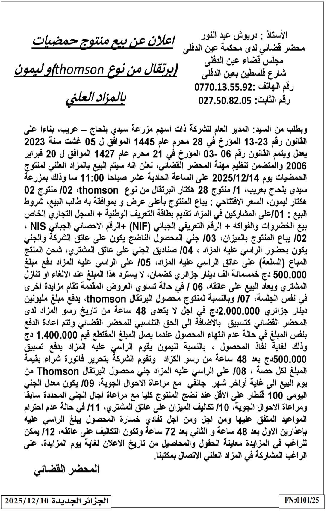 Il sera procédé à la vente au plus offrant et dernier enchérisseur le :