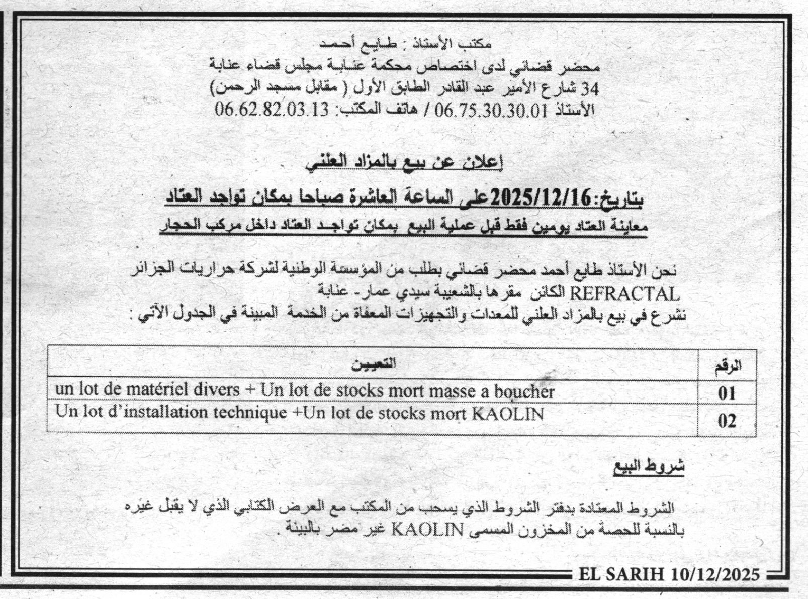 Il sera procédé à la vente au plus offrant et dernier enchérisseur le :