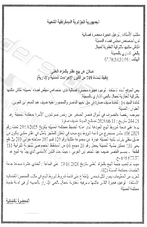 | Wilaya : MSila | |