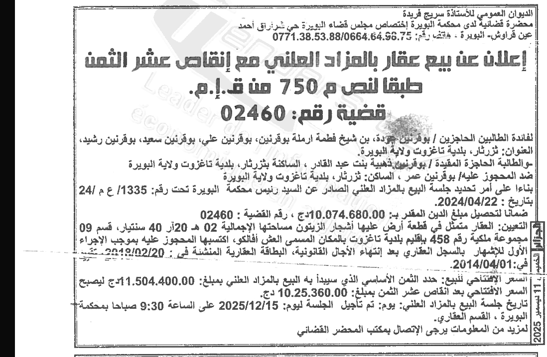 | Paru dans le journal : الجزائر | |