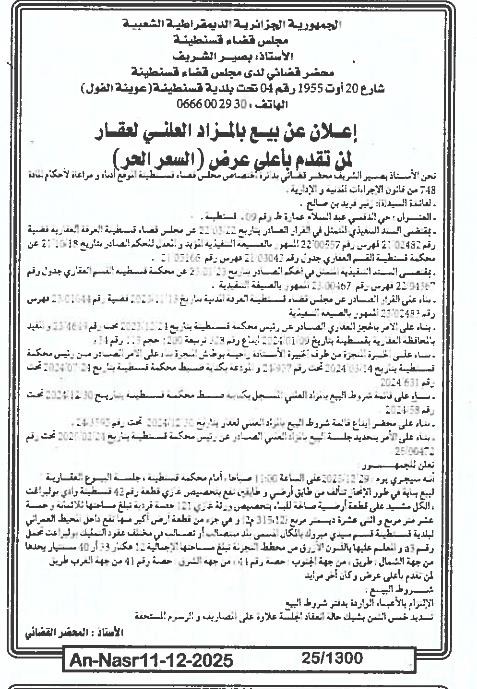 Il sera procédé à la vente au plus offrant et dernier enchérisseur le :