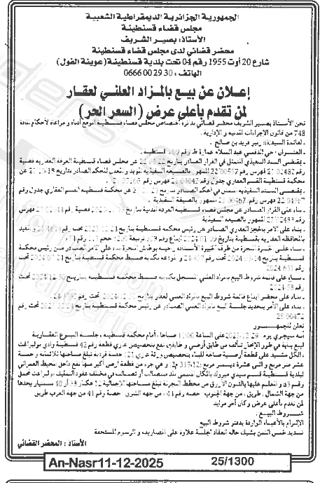 | Paru dans le journal : النصر | |