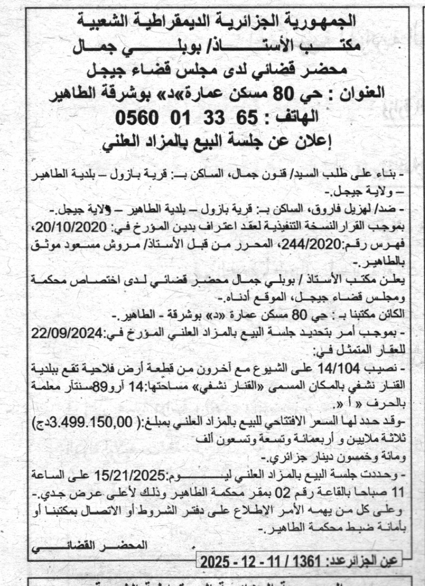 Il sera procédé à la vente au plus offrant et dernier enchérisseur le :