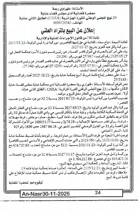 | Paru dans le journal : النصر | |