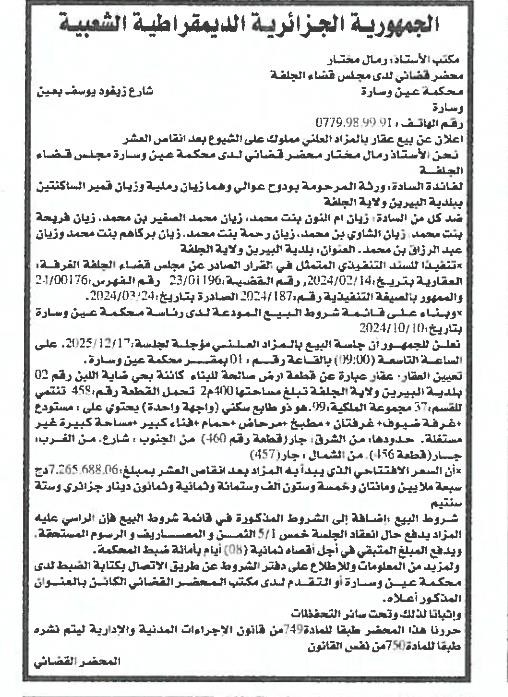 Il sera procédé à la vente au plus offrant et dernier enchérisseur le :