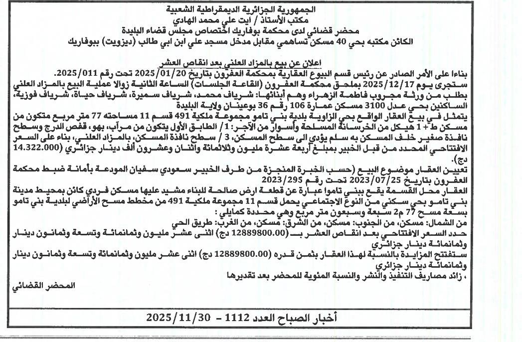 Il sera procédé à la vente au plus offrant et dernier enchérisseur le :