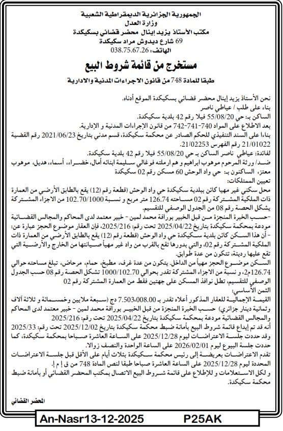 Il sera procédé à la vente au plus offrant et dernier enchérisseur le :