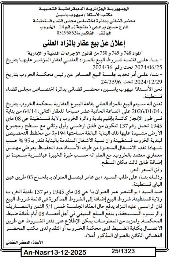 Il sera procédé à la vente au plus offrant et dernier enchérisseur le :