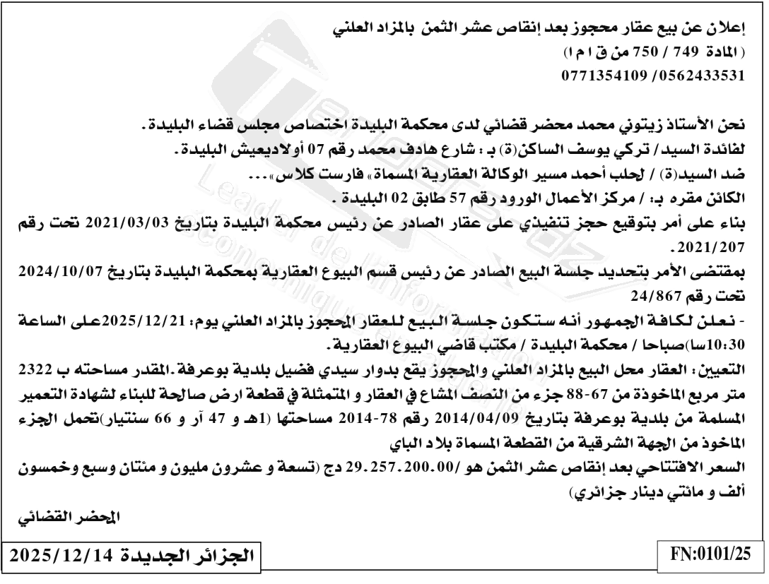| Paru dans le journal : الجزائر الجديدة | |