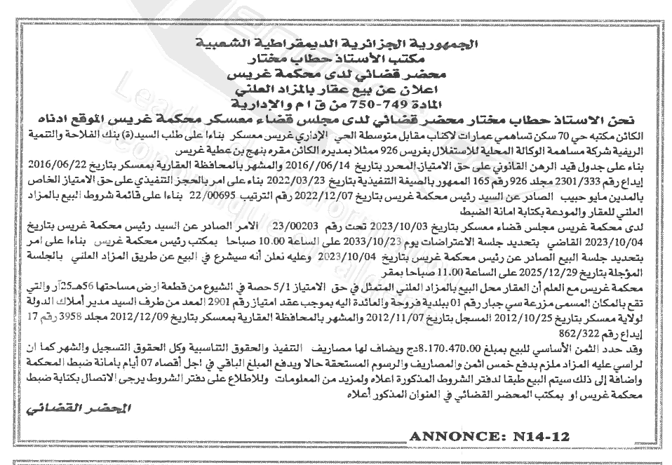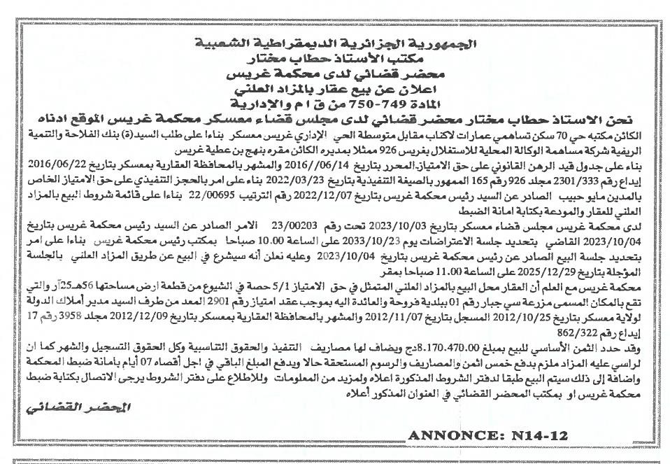 Il sera procédé à la vente au plus offrant et dernier enchérisseur le :