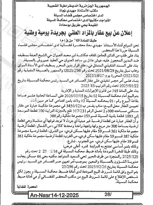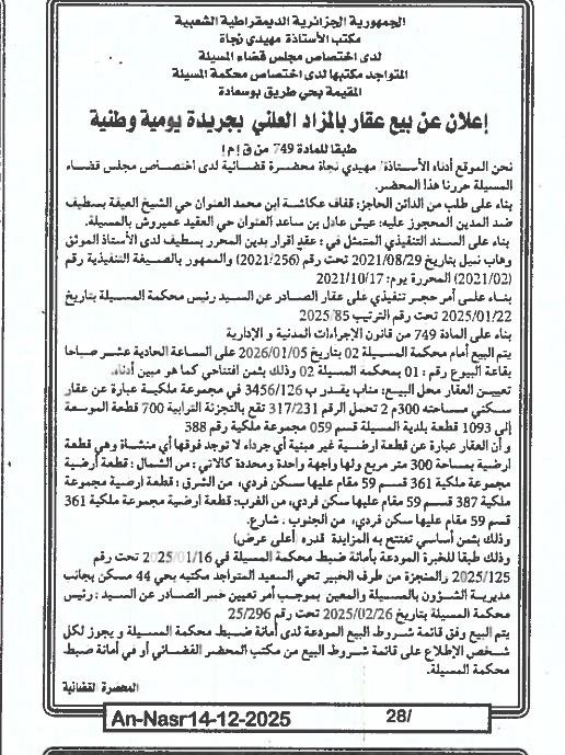 Il sera procédé à la vente au plus offrant et dernier enchérisseur le :